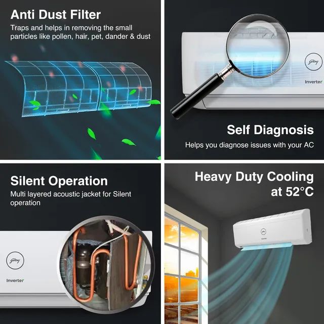 Invest in longevity with the 100% Copper Condenser and Anti-Corrosive Blue Fin Coating. This combination ensures that your Godrej Split Inverter AC remains resilient to wear and tear, providing you with a reliable cooling solution for years to come.